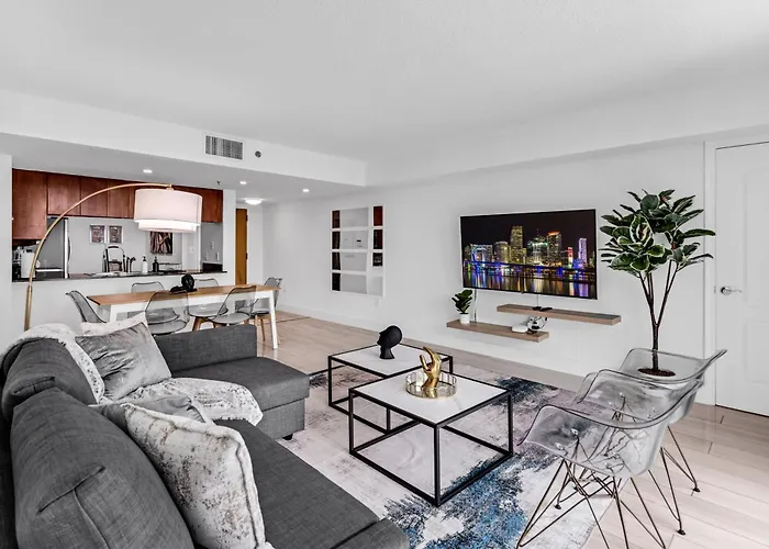 Die Ferienwohnung Lux 2B/2B Brickell - Free Parking Miami befindet sich im Zentrum von Miami, in ca. 2 km Entfernung von einem beliebten Einkaufszentrum wie dem Bayside Shopping Mall. Die Gäste dieses 2-Zimmer-Apartments haben Zugang zu einem Swimmingpool und dem Fitnesscenter, während Level 25 nur 5 Gehminuten von hier entfernt liegt.
